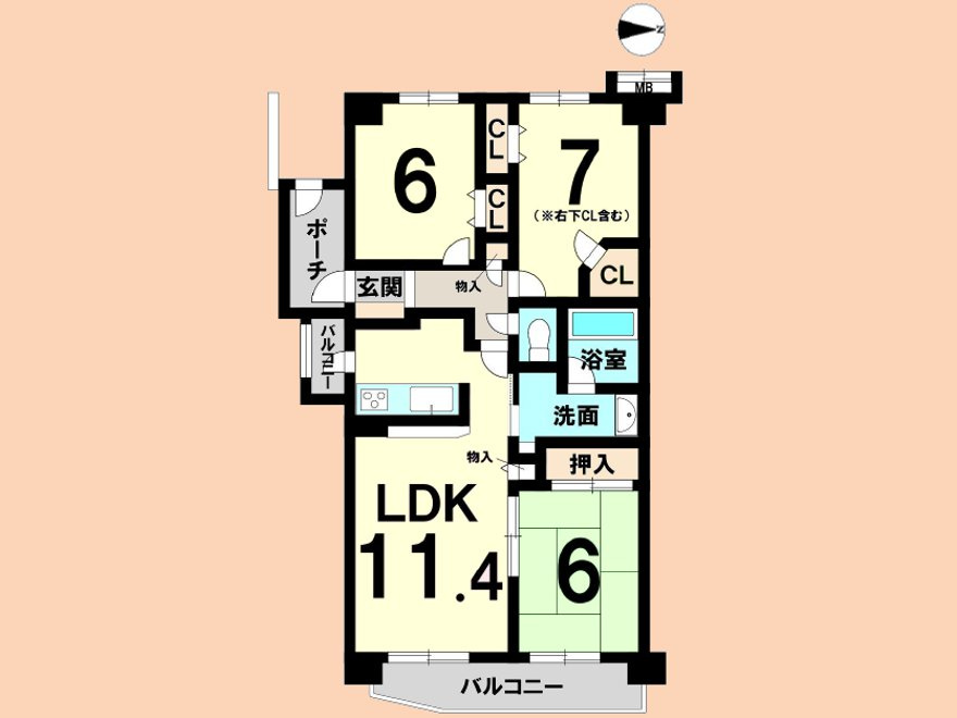 LDK 11.4帖 / 洋室 6.0帖 / 洋室 7.0帖 / 和室 6.0帖 / |