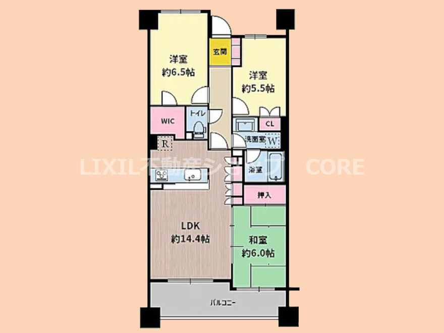 LDK 14.4帖 / 和室 6.0帖 / 洋室 6.5帖 / 洋室 5.5帖 / |