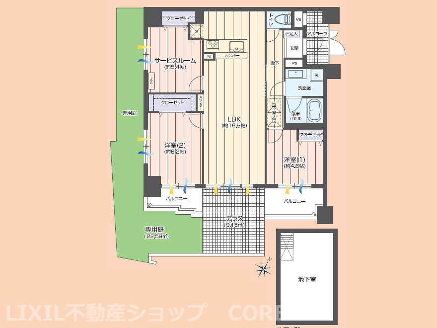 LDK 16.5帖 / 洋室 6.2帖 / 洋室 4.6帖 / S(納戸) 5.4帖 / |