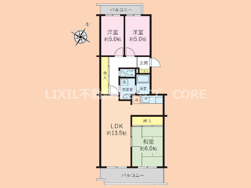 LDK 13.5帖 / 和室 6.0帖 / 洋室 5.0帖 / 洋室 5.0帖 / |