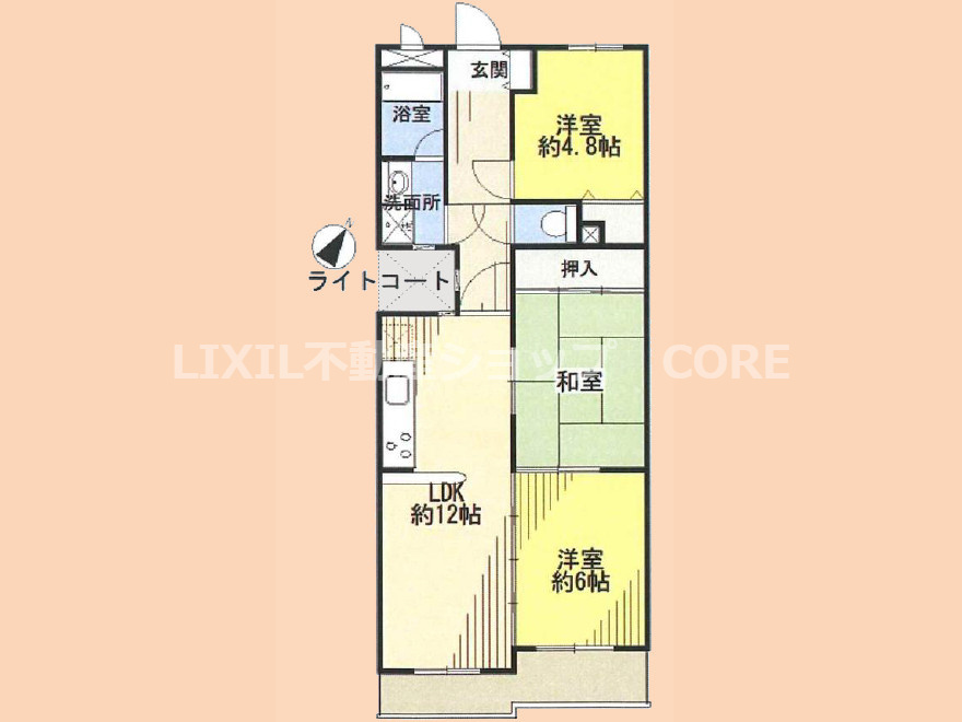 LDK 12.0帖 / 洋室 6.0帖 / 洋室 4.8帖 / 和室 / |