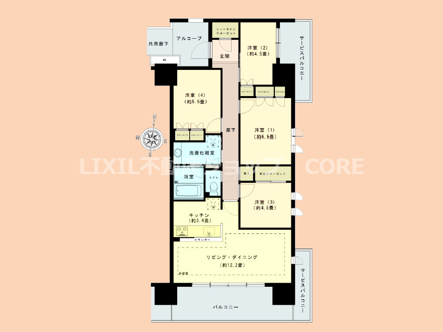 LDK 15.6帖 / 洋室 6.5帖 / 洋室 5.5帖 / 洋室 4.5帖 / 洋室 4.5帖 / |