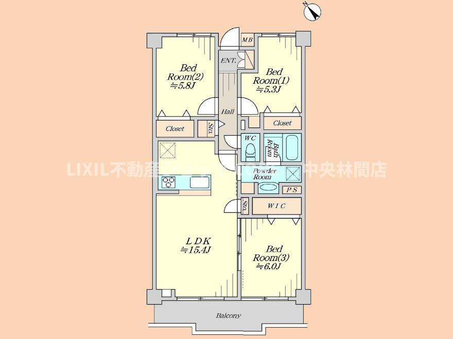 LDK 15.4帖 / 洋室 6.0帖 / 洋室 5.8帖 / 洋室 5.3帖 / |