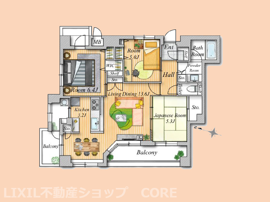 LDK 16.8帖 / 和室 5.3帖 / 洋室 6.4帖 / S(納戸) 5.0帖 / |