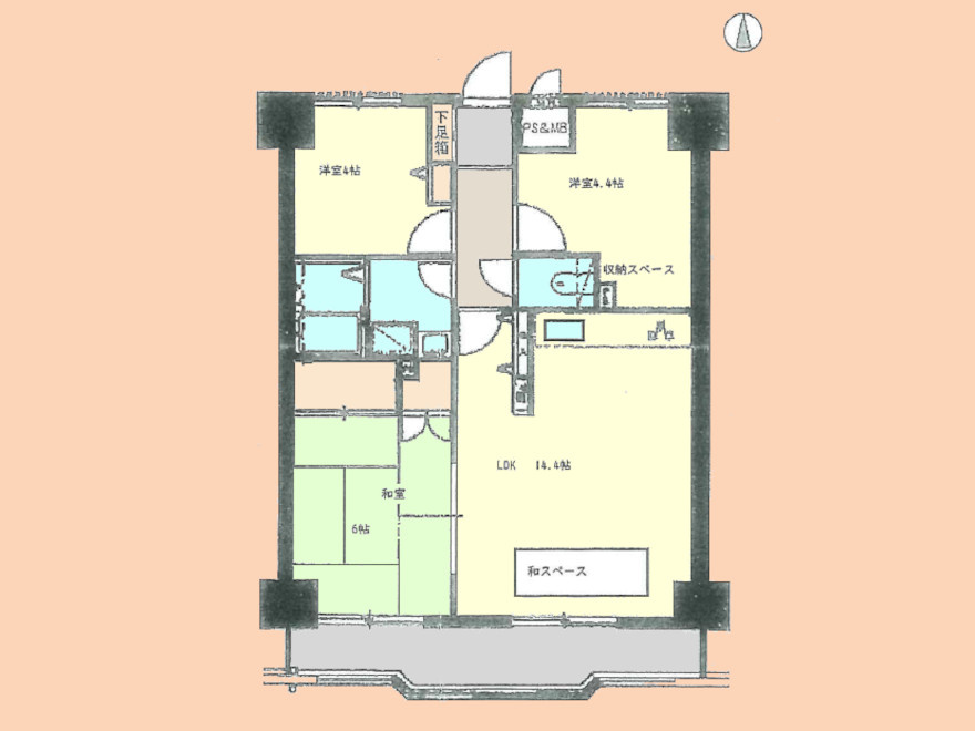LDK 14.4帖 / 和室 6.0帖 / 洋室 4.4帖 / 洋室 4.0帖 / |