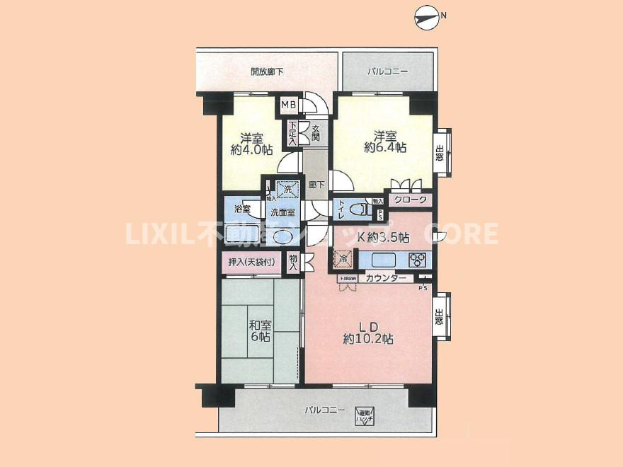 | 専有面積 | 64.63㎡ | バルコニー面積 | 15.24㎡ |