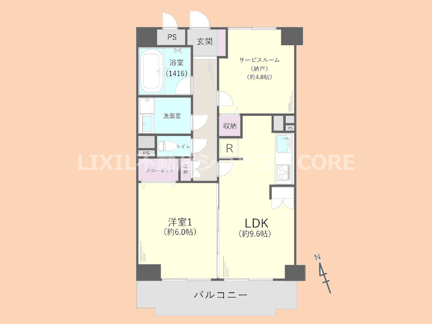 LDK 9.6帖 / 洋室 6.0帖 / S(納戸) 4.8帖 / |
