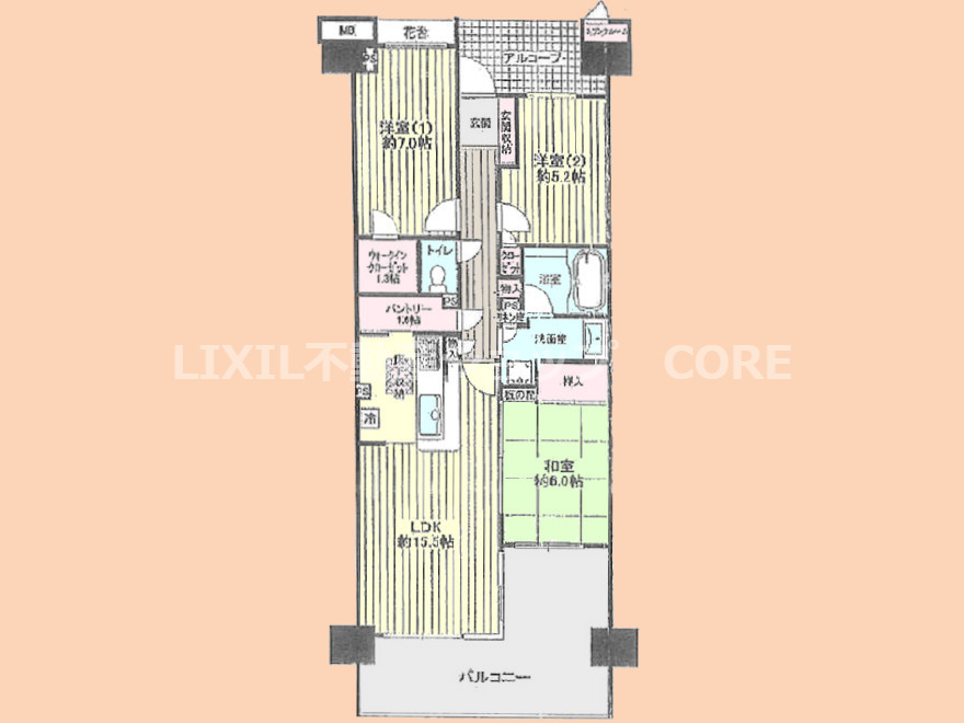 LDK 15.5帖 / 和室 6.0帖 / 洋室 7.0帖 / 洋室 5.2帖 / |
