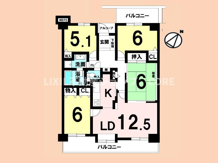 LDK 12.5帖 / 和室 6.0帖 / 洋室 6.0帖 / 洋室 6.0帖 / 洋室 5.1帖 / |