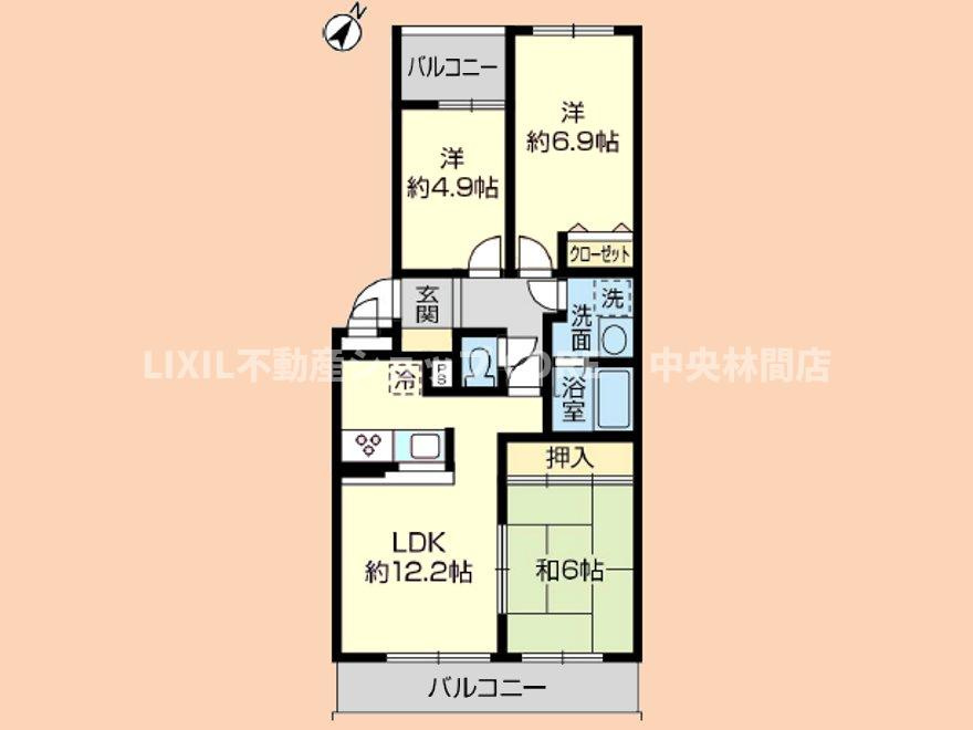 LDK 12.2帖 / 和室 6.0帖 / 洋室 6.9帖 / 洋室 4.9帖 / |