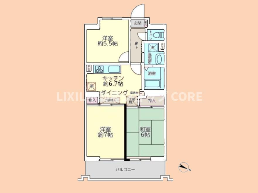 DK 6.7帖 / 和室 6.0帖 / 洋室 7.0帖 / 洋室 5.5帖 / |