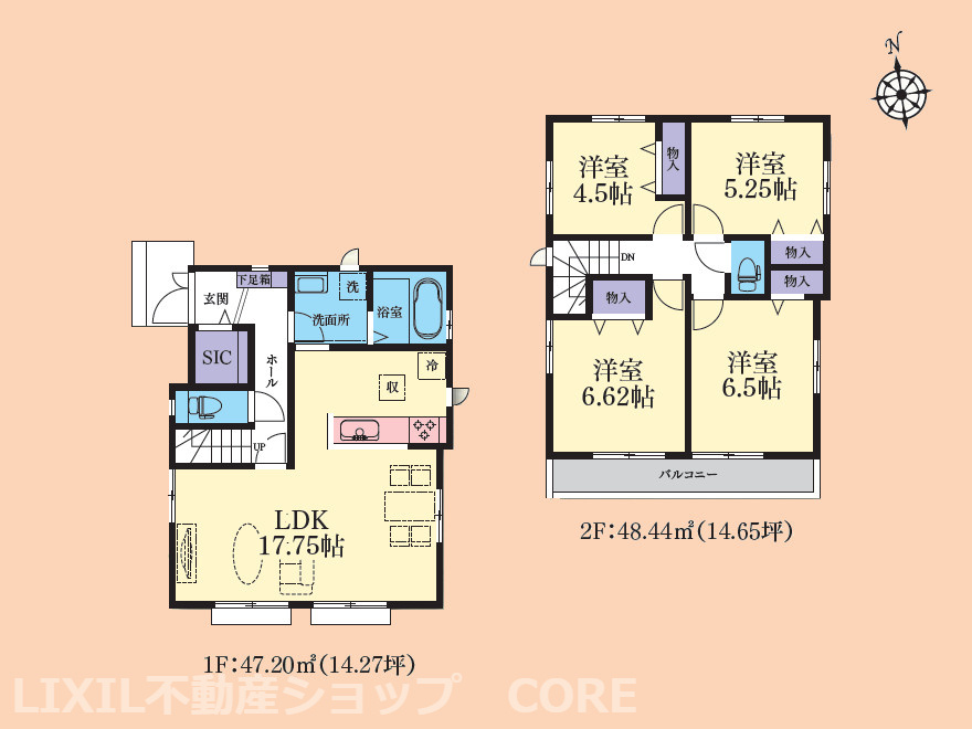 LDK 17.7帖 洋室 6.6帖 洋室 6.5帖 洋室 5.2帖 洋室 4.5帖 |