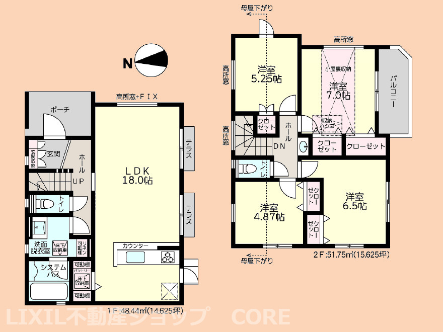 LDK 18.0帖 / 洋室 7.0帖 / 洋室 6.5帖 / 洋室 5.2帖 / 洋室 4.8帖 / |