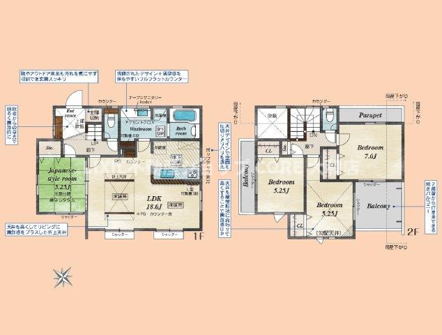 LDK 18.0帖 / 和室 5.2帖 / 洋室 7.0帖 / 洋室 5.2帖 / 洋室 5.2帖 / |