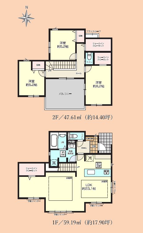 LDK 23.1帖 / 洋室 8.2帖 / 洋室 5.2帖 / 洋室 5.2帖 / |