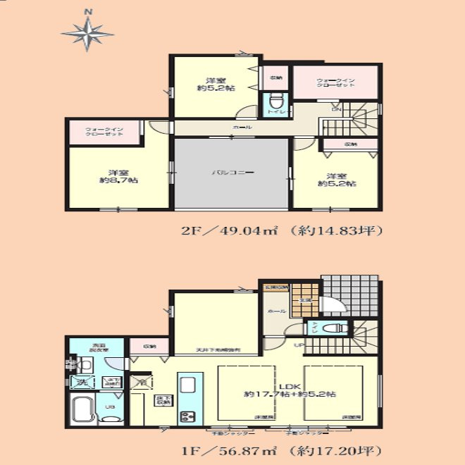 LDK 22.9帖 / 洋室 8.7帖 / 洋室 5.2帖 / 洋室 5.2帖 / |