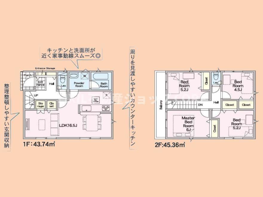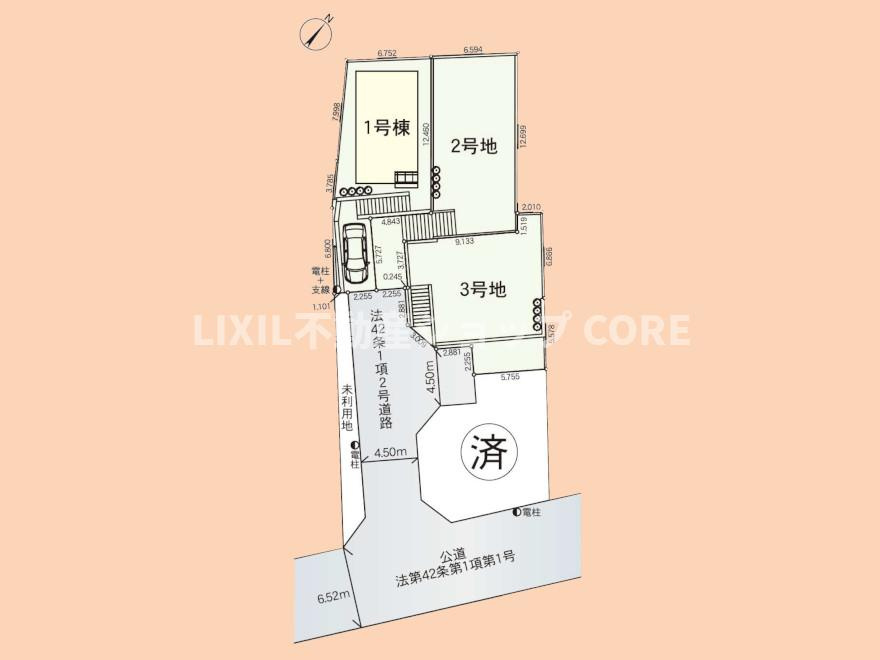 | 建物面積 | 105.99㎡ ~ 110.95㎡ | 土地面積 | 124.05㎡ ~ 143.43㎡ |
