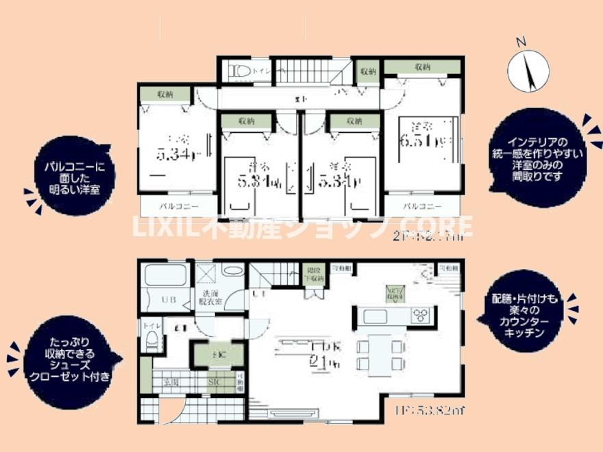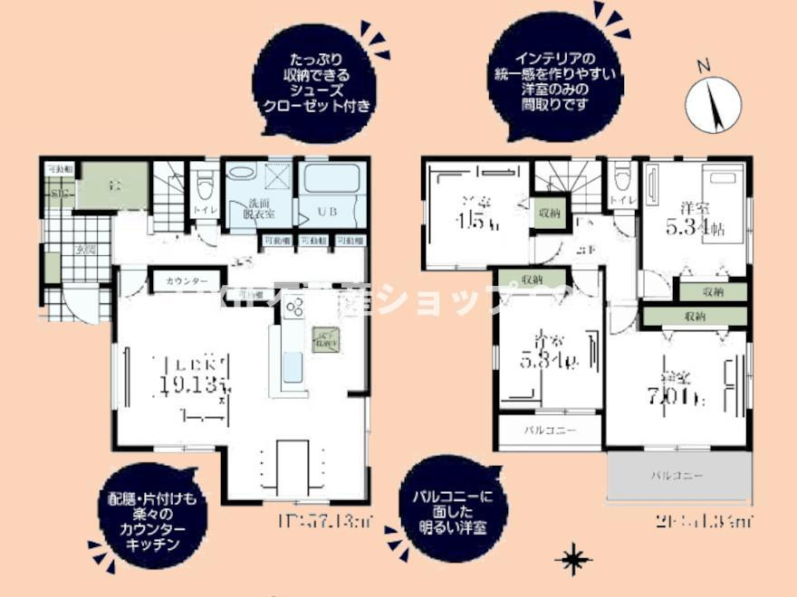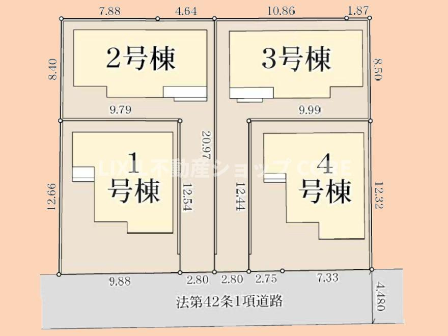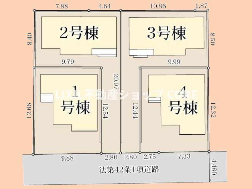 | 建物面積 | 95.65㎡ ~ 98.33㎡ | 土地面積 | 124.48㎡ ~ 125.01㎡ |