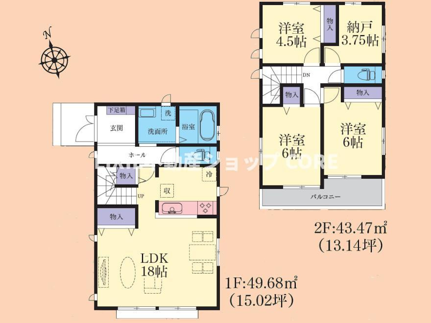 | 建物面積 | 105.99㎡ ~ 110.95㎡ | 土地面積 | 124.05㎡ ~ 143.43㎡ |