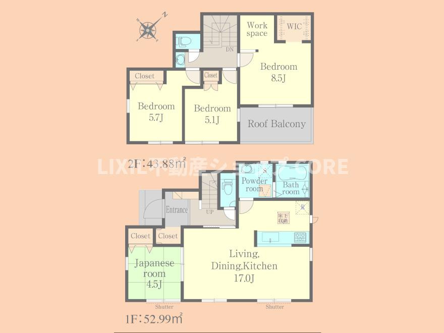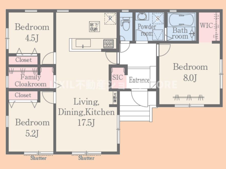 LDK 17.5帖 洋室 8.0帖 洋室 5.2帖 洋室 4.5帖 洋室 5.1帖 |