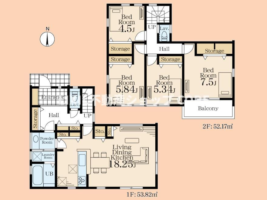 | 建物面積 | 97.71㎡ ~ 104.34㎡ | 土地面積 | 111.02㎡ ~ 136.17㎡ |