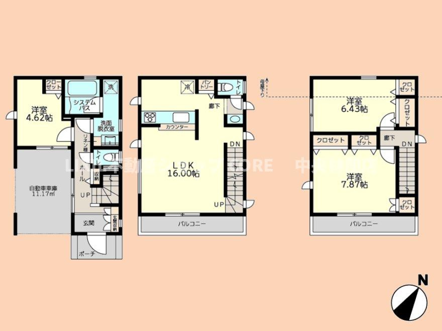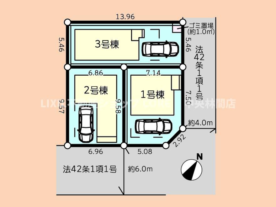 | 建物面積 | 103.49㎡ ~ 105.16㎡ | 土地面積 | 125.51㎡ ~ 169.05㎡ |