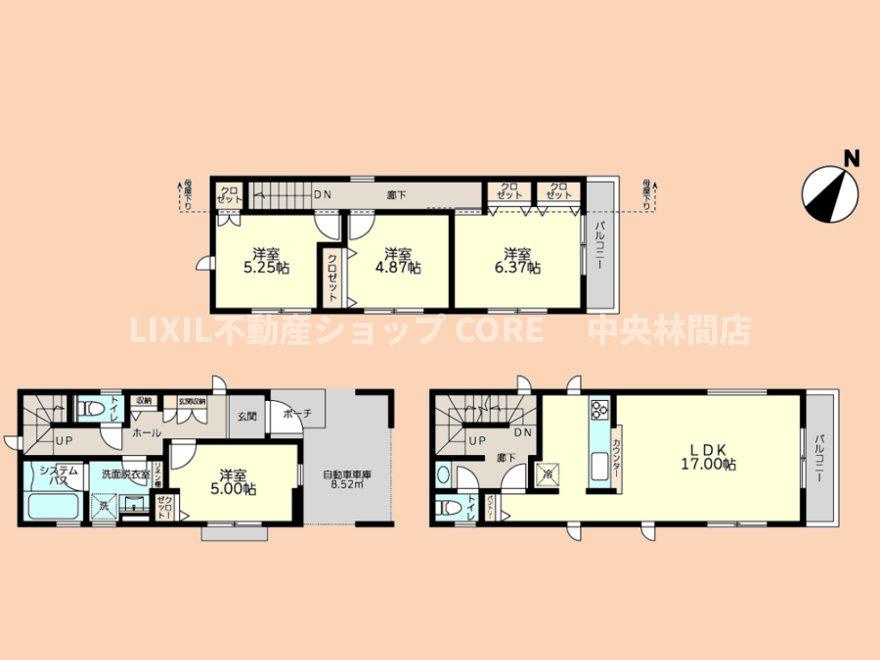 LDK 17.0帖 洋室 5.0帖 洋室 5.2帖 洋室 4.8帖 洋室 6.3帖 |