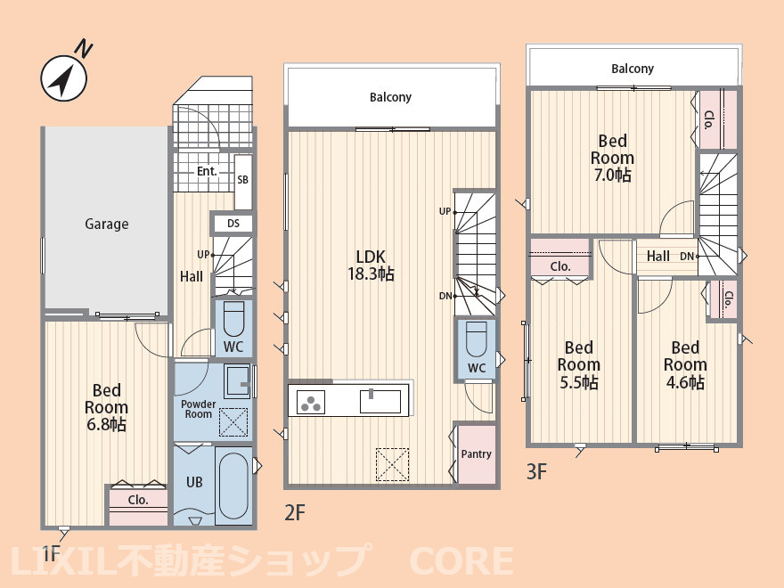 LDK 18.3帖 / 洋室 7.0帖 / 洋室 6.8帖 / 洋室 5.5帖 / 洋室 4.6帖 / |