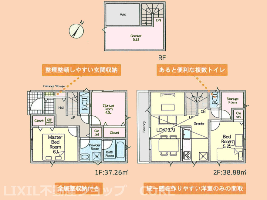 LDK 13.7帖 洋室 6.0帖 洋室 5.2帖 S(納戸) 4.5帖 |