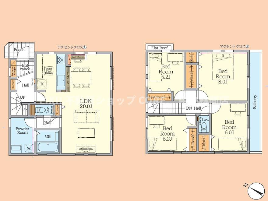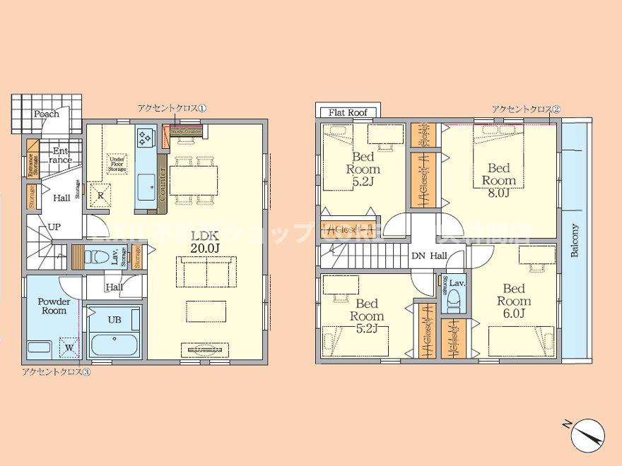 LDK 20.0帖 洋室 5.2帖 洋室 6.0帖 洋室 5.2帖 洋室 8.0帖 |