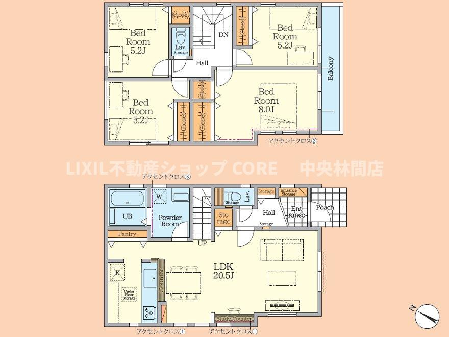 LDK 20.5帖 洋室 5.2帖 洋室 8.0帖 洋室 5.2帖 洋室 5.2帖 |