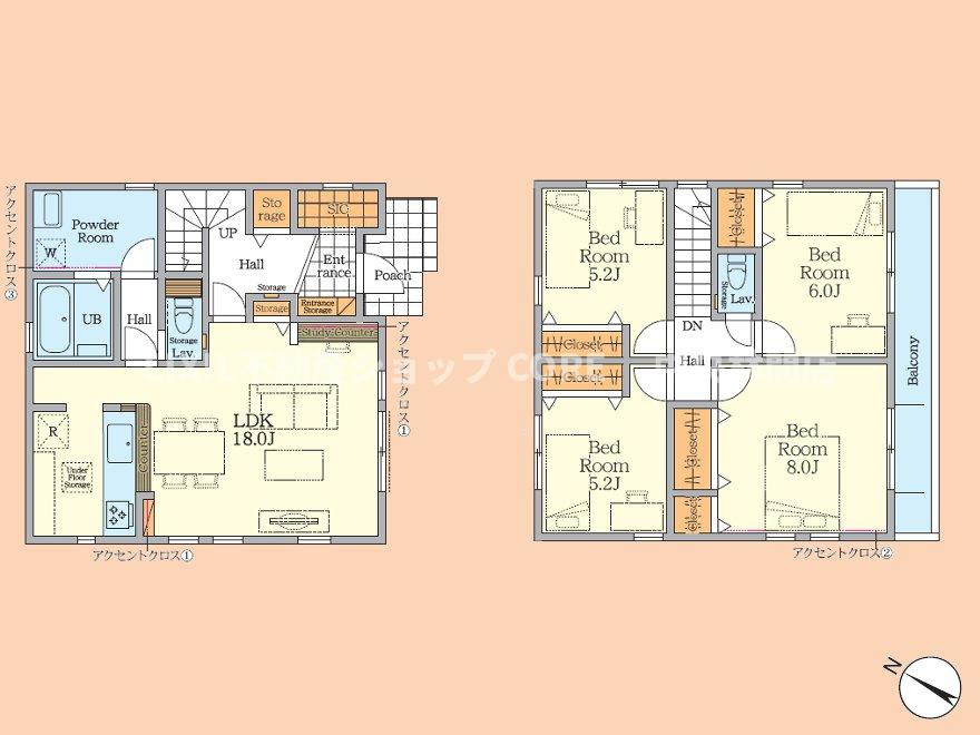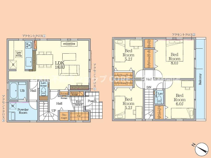 LDK 18.0帖 洋室 5.2帖 洋室 8.0帖 洋室 6.0帖 洋室 5.2帖 |