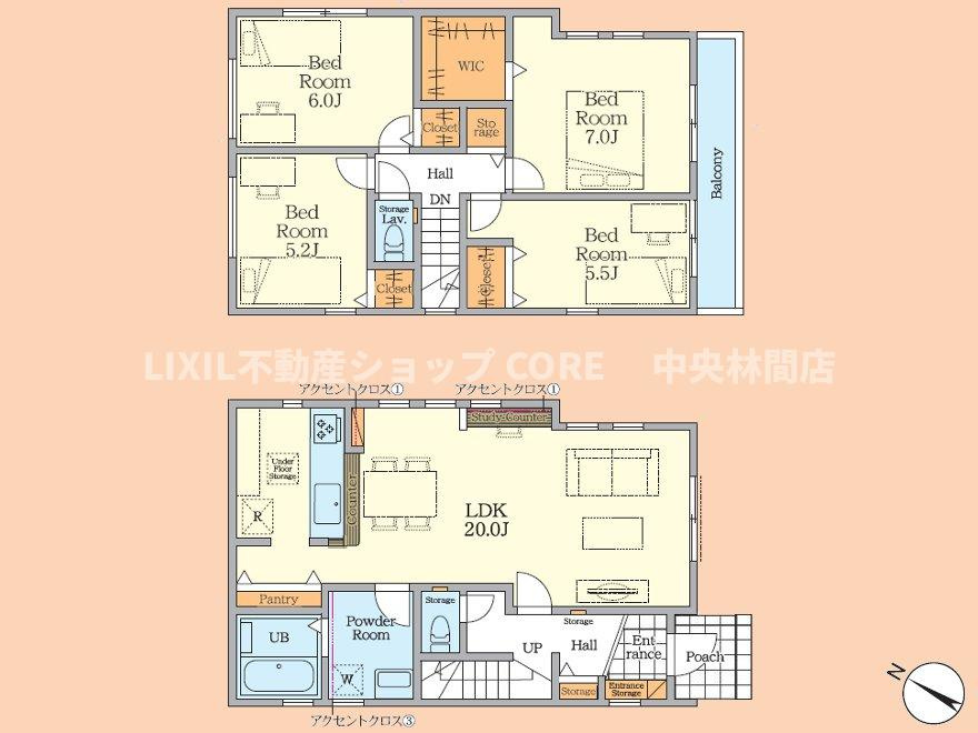 LDK 20.0帖 洋室 5.2帖 洋室 5.5帖 洋室 6.0帖 洋室 7.0帖 |