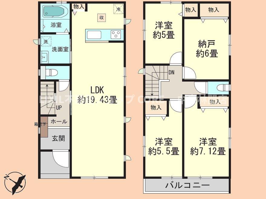 LDK 19.4帖 洋室 5.5帖 洋室 7.1帖 洋室 5.0帖 S(納戸) 6.0帖 |