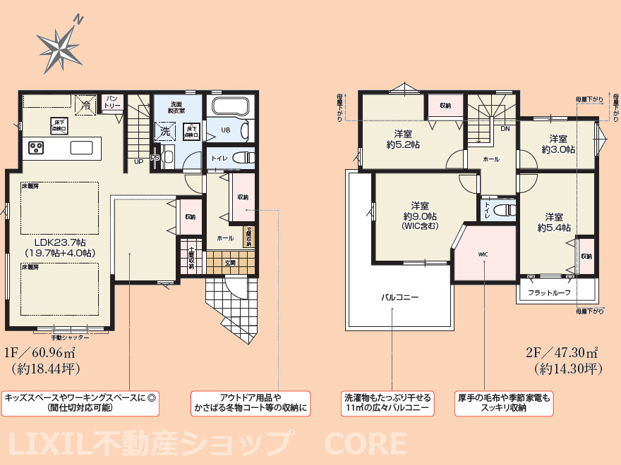 LDK 23.7帖 / 洋室 9.0帖 / 洋室 5.4帖 / 洋室 5.2帖 / 洋室 3.0帖 / |