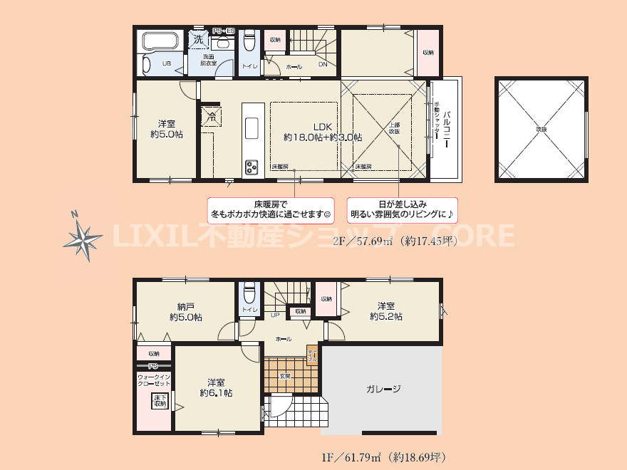 LDK 21.0帖 / 洋室 6.1帖 / 洋室 5.2帖 / 洋室 5.0帖 / S(納戸) 5.0帖 / |