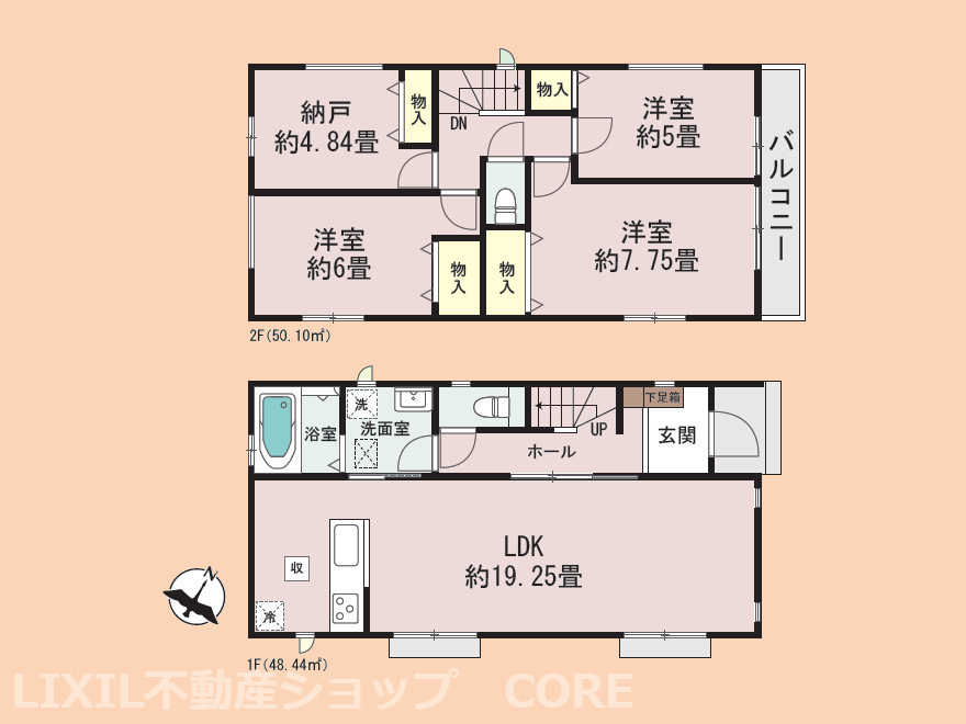 LDK 19.2帖 洋室 7.7帖 洋室 6.0帖 洋室 5.0帖 S(納戸) 4.8帖 |