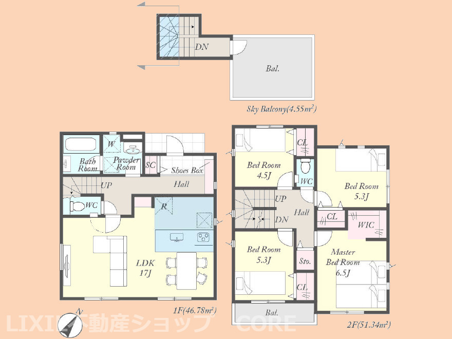 LDK 17.0帖 / 洋室 6.5帖 / 洋室 5.3帖 / 洋室 5.3帖 / 洋室 4.5帖 / |