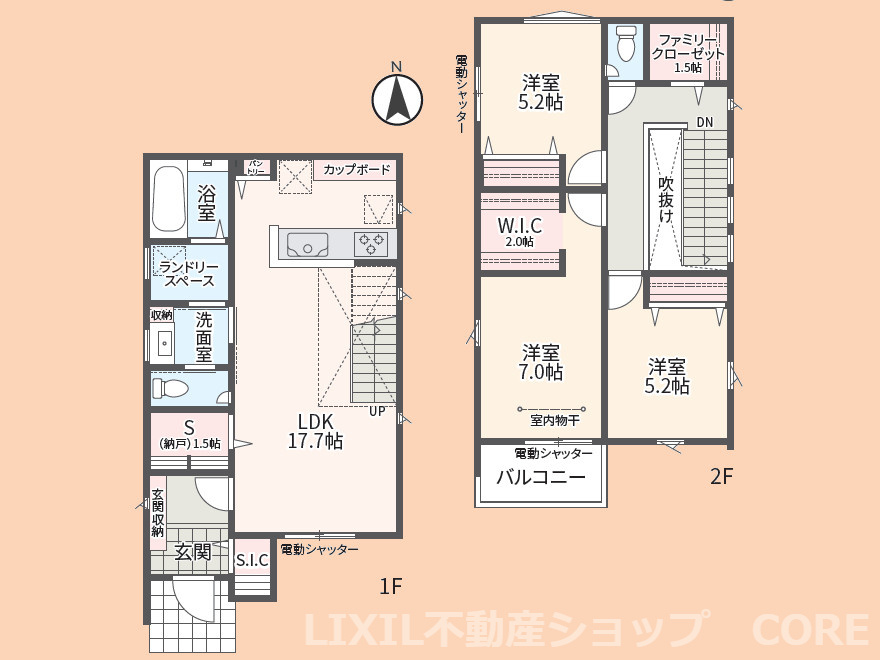 LDK 17.7帖 洋室 7.0帖 洋室 5.2帖 洋室 5.2帖 S(納戸) 1.5帖 |