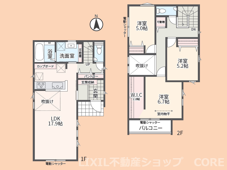 LDK 17.9帖 洋室 6.7帖 洋室 5.2帖 洋室 5.0帖 |