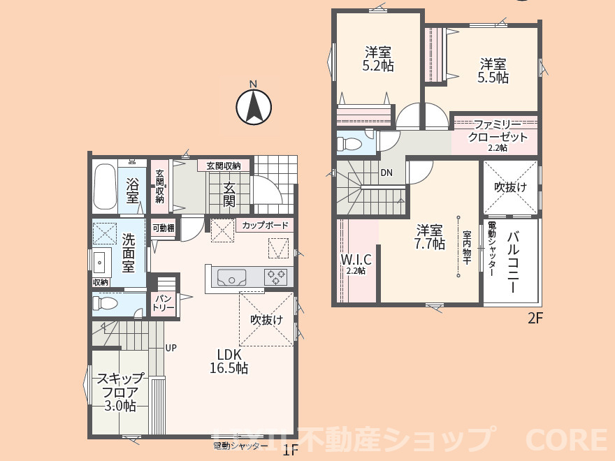 LDK 16.5帖 洋室 7.7帖 洋室 5.5帖 洋室 5.2帖 |