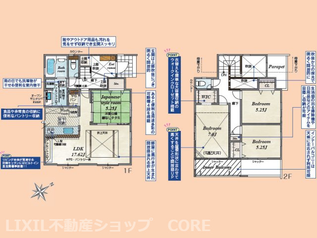 LDK 17.6帖 / 和室 5.2帖 / 洋室 7.0帖 / 洋室 5.2帖 / 洋室 5.2帖 / |