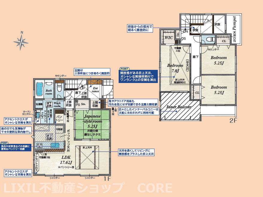 LDK 17.6帖 / 和室 5.2帖 / 洋室 7.0帖 / 洋室 5.2帖 / 洋室 5.2帖 / |