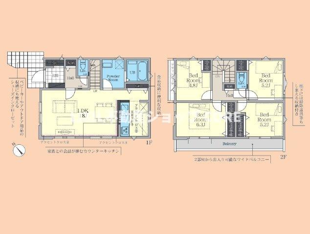 LDK 18.0帖 / 洋室 4.8帖 / 洋室 6.3帖 / 洋室 5.2帖 / 洋室 5.2帖 / |