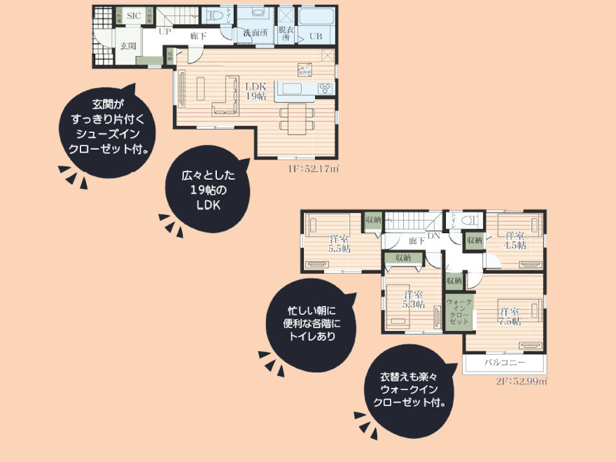 LDK 19.0帖 洋室 7.5帖 洋室 5.5帖 洋室 5.3帖 洋室 4.5帖 |