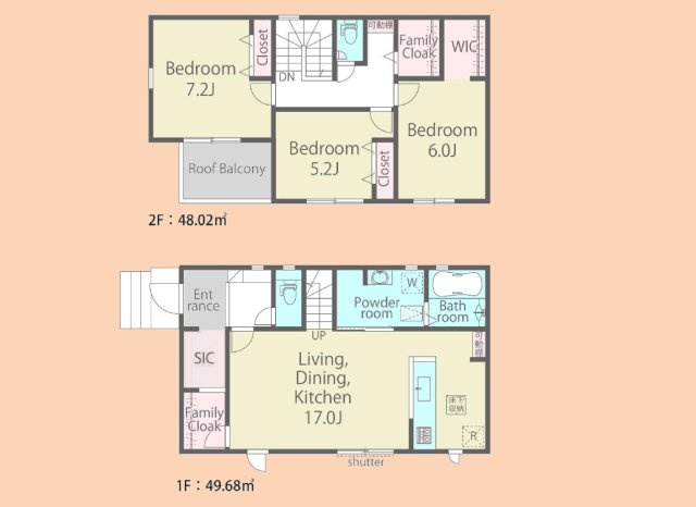 LDK 17.0帖 洋室 6.0帖 洋室 5.2帖 洋室 7.2帖 |