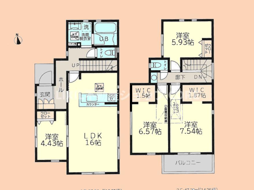 LDK 16.0帖 洋室 4.4帖 洋室 7.5帖 洋室 6.5帖 洋室 5.9帖 |