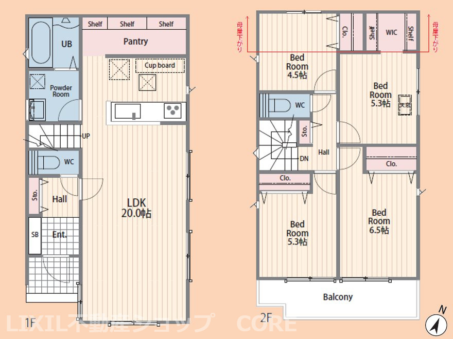 LDK 20.0帖 洋室 6.5帖 洋室 5.3帖 洋室 5.3帖 洋室 4.5帖 |