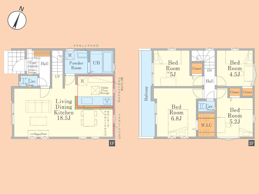 LDK 18.5帖 1室 / 洋室 6.8帖 1室 / 洋室 5.2帖 1室 / 洋室 5.0帖 1室 / 洋室 4.5帖 1室 / |