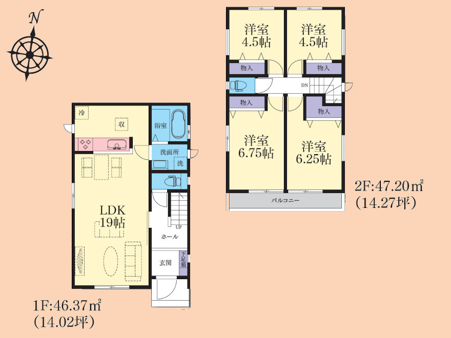 | 建物面積 | 96.25㎡ | 土地面積 | 84.58㎡ |